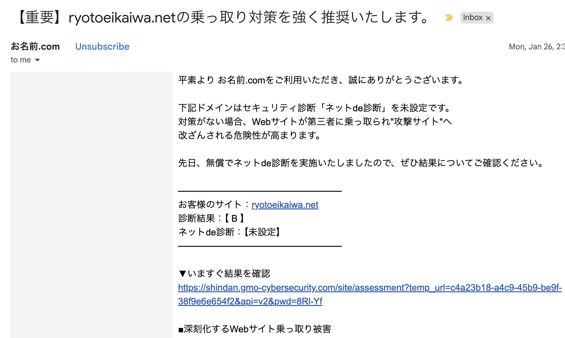 | メールは詐欺? | ❌ 詐欺ではない(営業色は強め) |